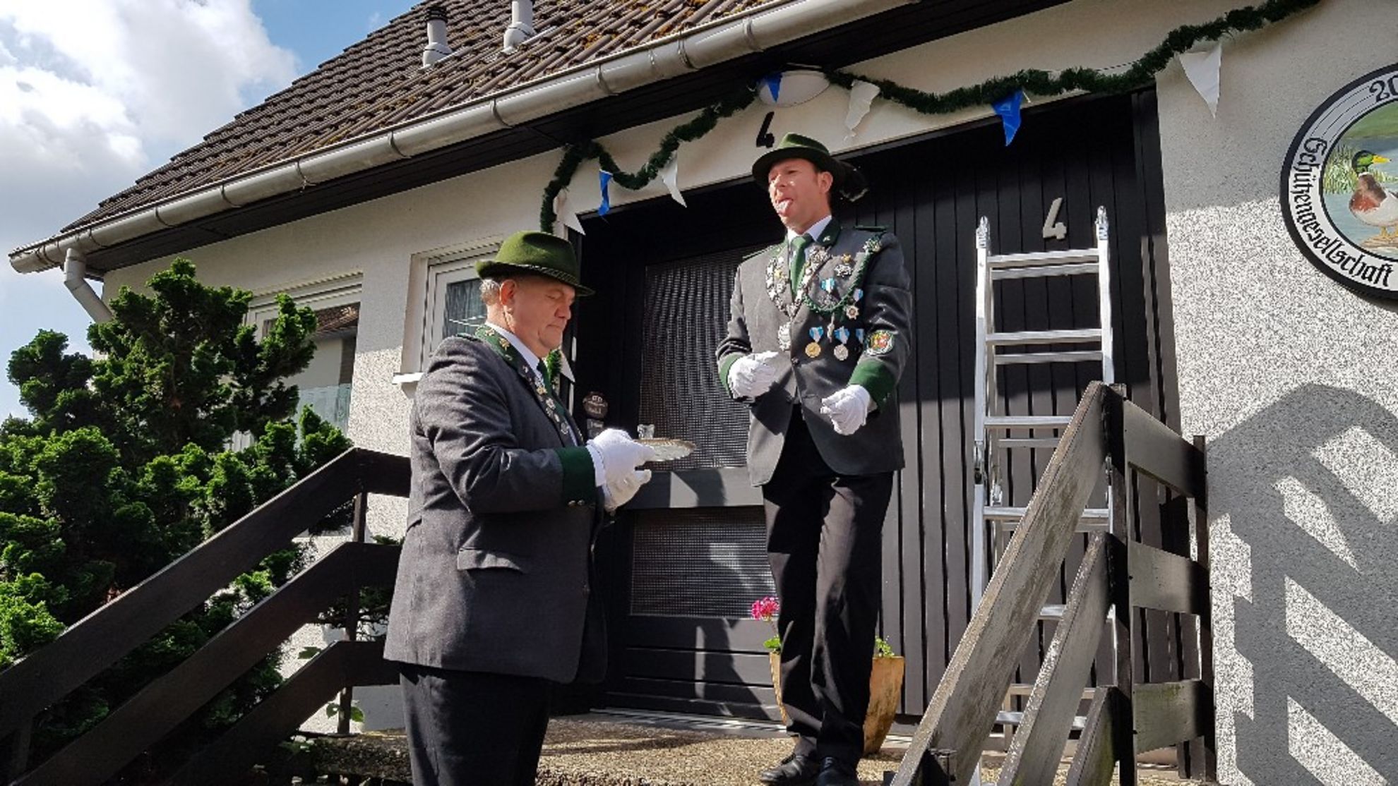 Hauptmann Hanjo Pusch, seit 45 Jahren Mitglied, berichtete, dass Christian Kuckuck beim Schießen 47 Ringe von möglichen 50 geschossen hatte, um den Königstitel zu erreichen. Hanjo selbst war bereits vier Mal König, doch eine solche Leistung hätte bislang noch kein anderer geschafft. Christian Kuckuck freute sich über die vielen Glückwünsche sowohl zum wohlverdienten Titel als auch zum Geburtstag und meinte: „Das ist hier mein Elternhaus und ich denke, dass meine Eltern sehr stolz gewesen wären, die Königsscheibe daran zu sehen. Das letzte Mal gab es ein ähnliches Ereignis vor 32 Jahren, als ich Jugendkönig wurde.“