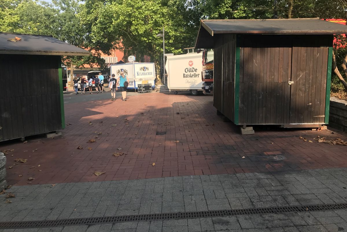 Nach dem Schock über die Brandstiftung läuft der Aufbau in der Innenstadt wie geplant weiter.