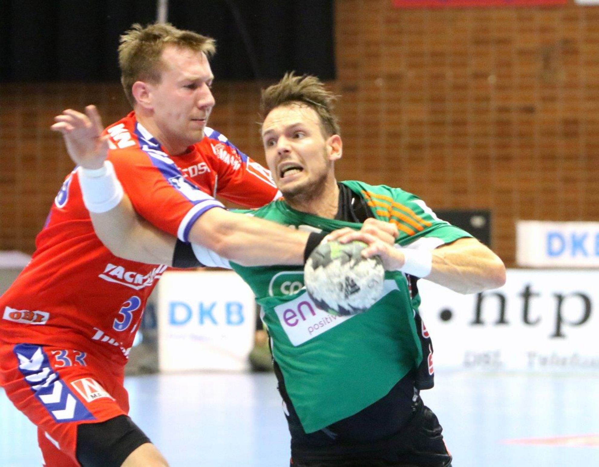 Defensiv boten die Gastgeber über 60 Minuten eine bärenstarke Vorstellung. „Ds war der Schlüssel zum Sieg“, analysierte Abwehrchef Sven-Sören Christophers. Vorne lief lange aber wenig zusammen. Es gelang nur selten die Abwehr der Mannschaft von Robert Andersson in Bewegung zu bringen, wobei wie schon Sonntag in Leipzig die Wucht des verletzten Mait Patrail fehlte. Und bei den wenigen freien Chance war HC-Keeper Gorazd Skof auf dem Posten. Schon in der 2. Minute parierte er erst den Tempogegenstoß von Caspar Mortensen und entschärfte auch den folgenden Siebenmeter des Dänen.
