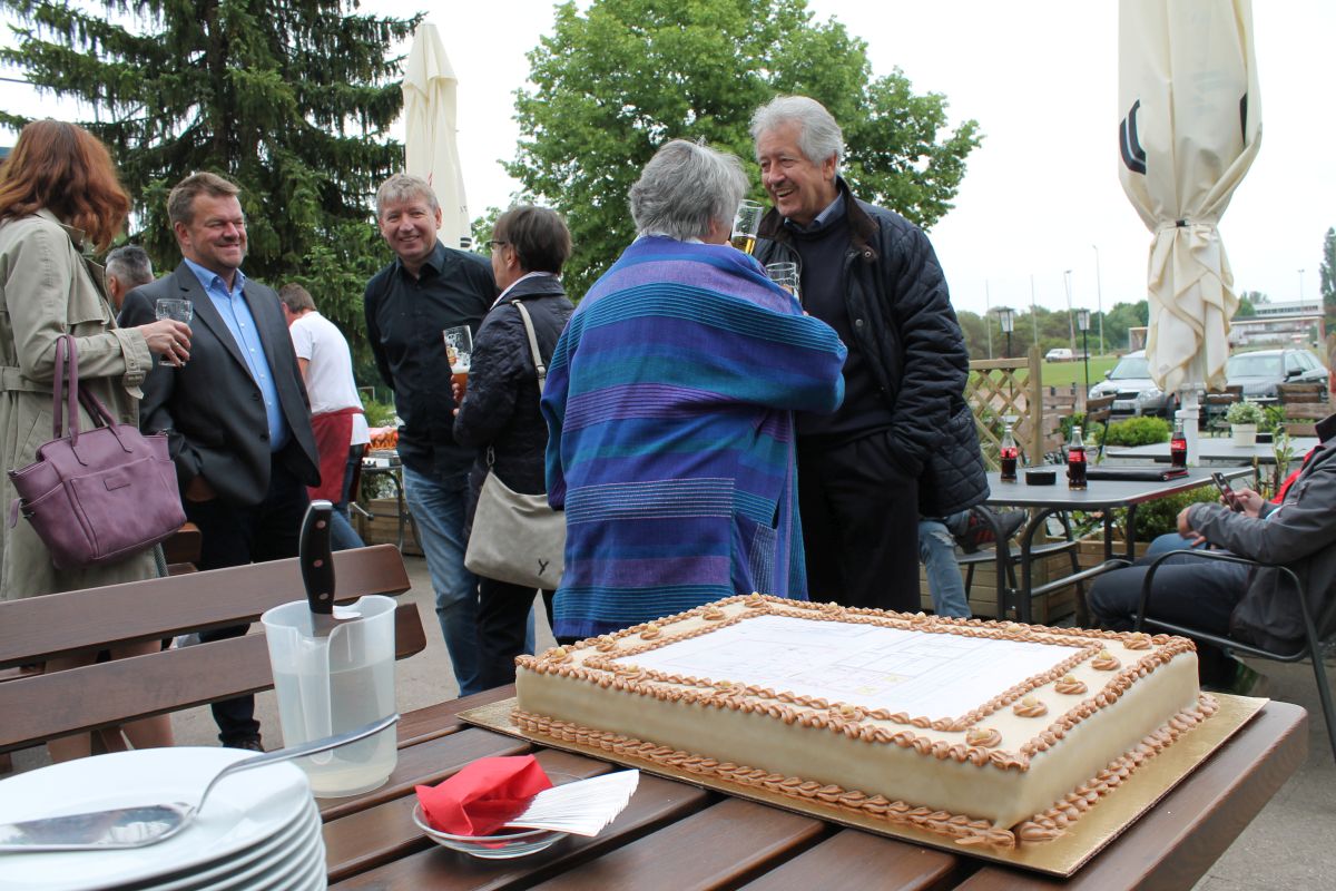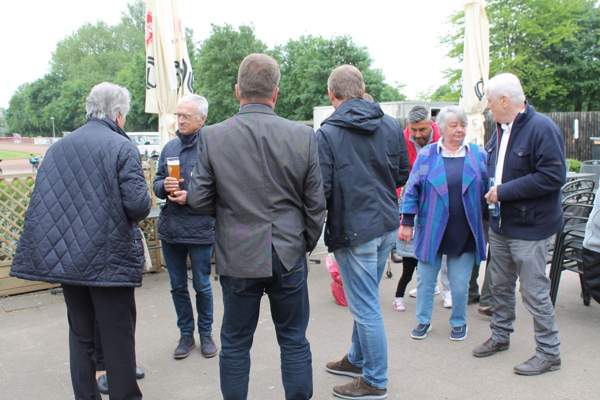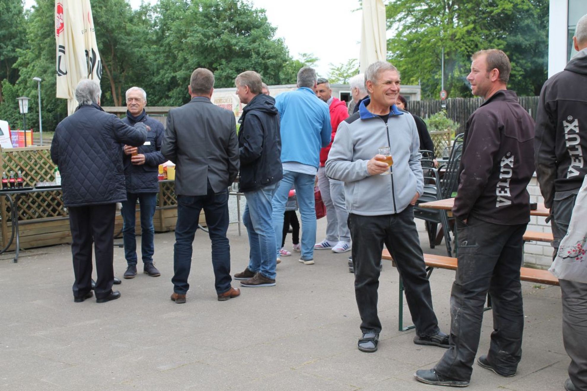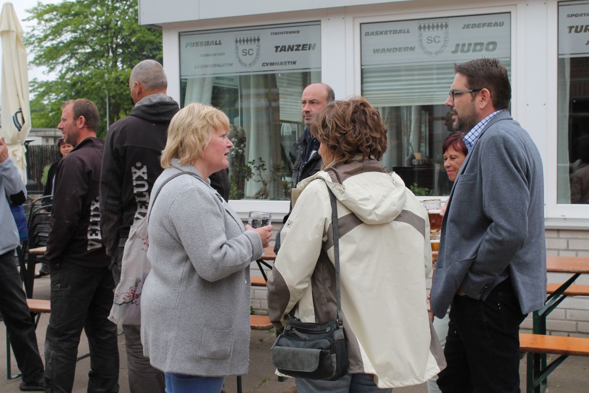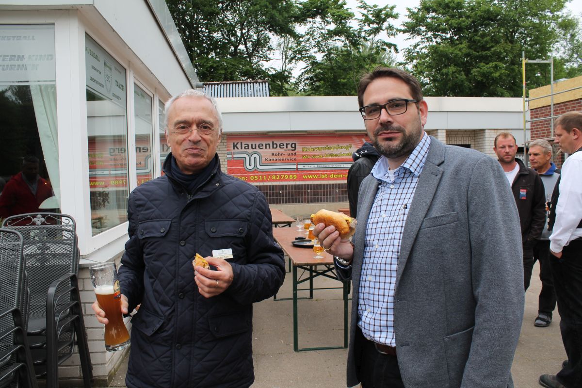 Heute ist es soweit, der erste Schritt in die Zukunft. Richtfest beim SC-Hemmingen-Westerfeld. Der Zimmermeister Marcel Rieger bringt den Richtkranz an, Gerd Gerlach, 1. Vorsitzender, bedankt sich bei allen Beteiligten für die geleistete Unterstützung. Hierzu zählen unter anderem die Stadt Hemmingen, der Architekt, die Vorstandsmitglieder, einzelne Vereinsmitglieder, der Platzwart, die Handwerker und viele mehr.