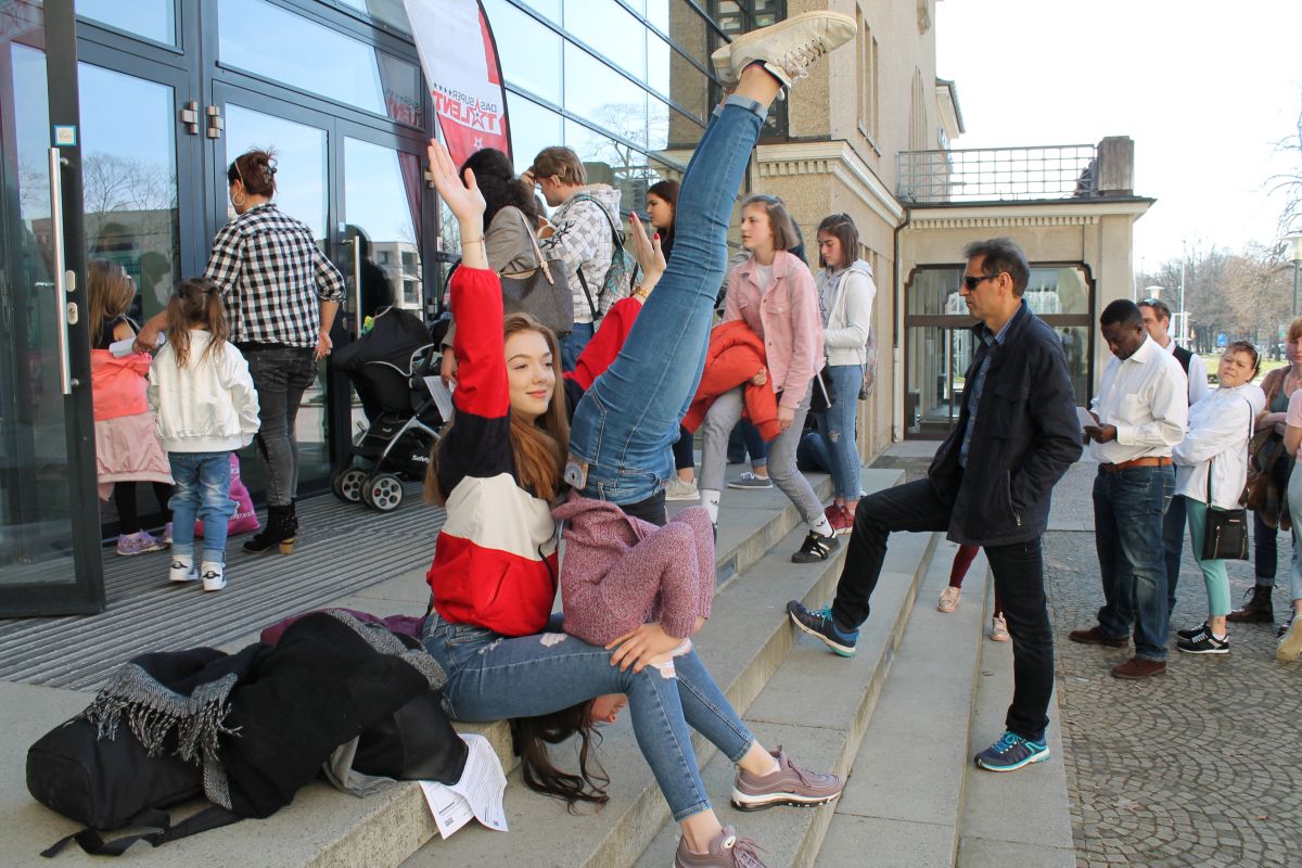 Die Schlange vor der Eingangstür des HCC Hannover ist lang, die Wartezeit beträgt rund 4 Stunden. Da kommt man schon einmal mit den anderen "Talenten" ins Gespräch. Die Mädchen freunden sich mit der 19jährigen Youtuberin "Caramella" an, die mit ihrer Freundin eigens aus Hildesheim angereist ist und für die Jury Hip Hop tanzen wird. "Vielleicht machen wir ja mal etwas zusammen", regt sie an und prompt gibt es eine kleine "Showeinlage", die unter diesem Text durch anklicken angesehen werden kann.