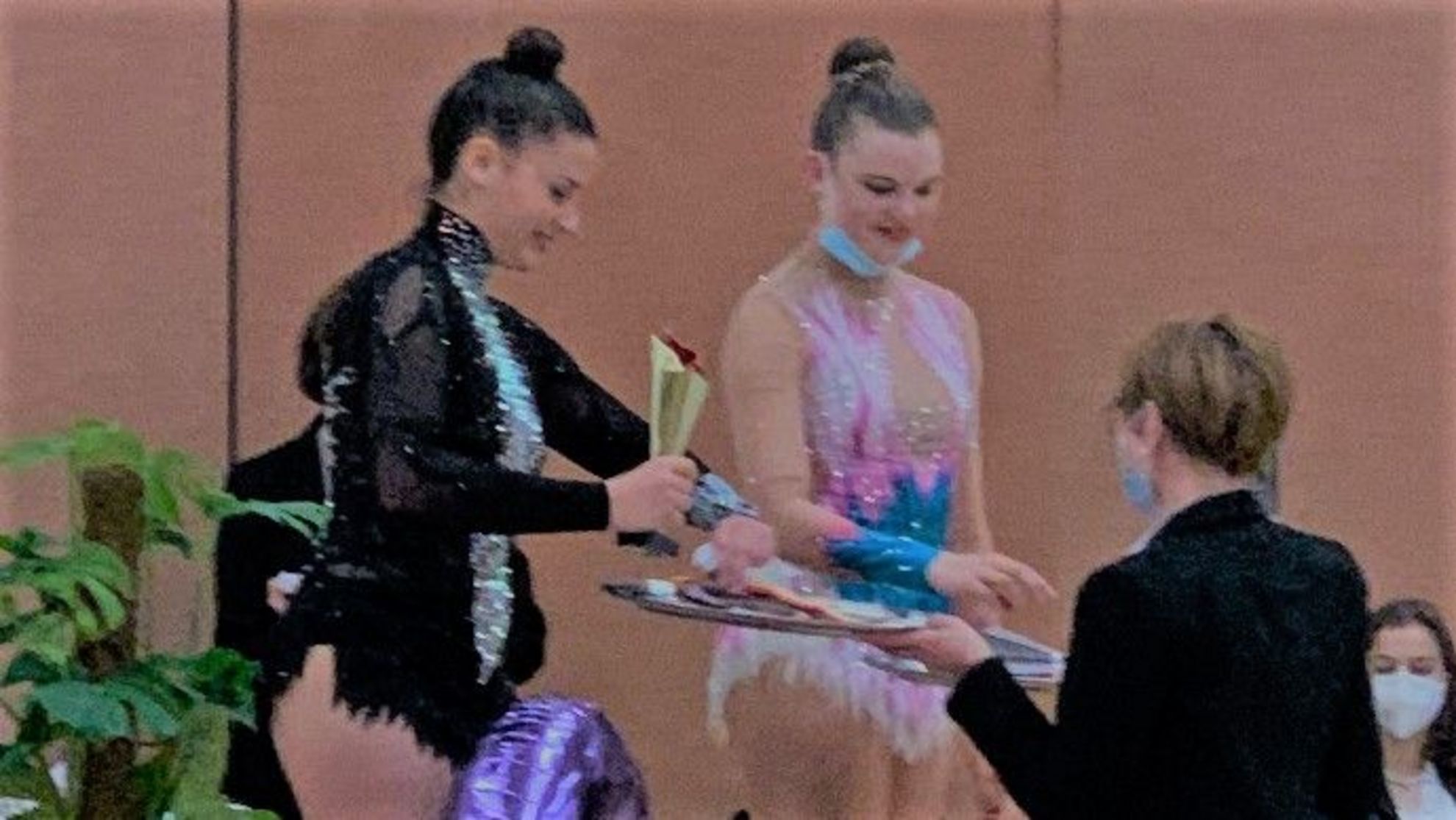Anna Pinna von der SV Arnum strahlt. Sie hat in dem großen Teilnehmerfeld des Regio-Cups den dritten Platz erreicht und nimmt Geschenke, die Bronzemedaille und einen großen Pokal mit nach Hause. "Nach dem Bundeskadertest, an dem unsere Mädchen Ariana Arrago und Izabella Makowski erfolgreich teilgenommen haben, war das das zweite wichtige Ereignis nach den Ferien. Alle Mädchen haben sich sehr viel Mühe gegeben und entsprechend gut abgeschnitten", freut sich auch Trainerin Iryna Sherenkovska. Gemeinsam mit den Trainerinnen Tanya Proskuryakova und Olena Arrago leitet Sherenkovska seit gut einem Jahr erfolgreich die Gruppe Rhythmische Sportgymnastik der SV Arnum.