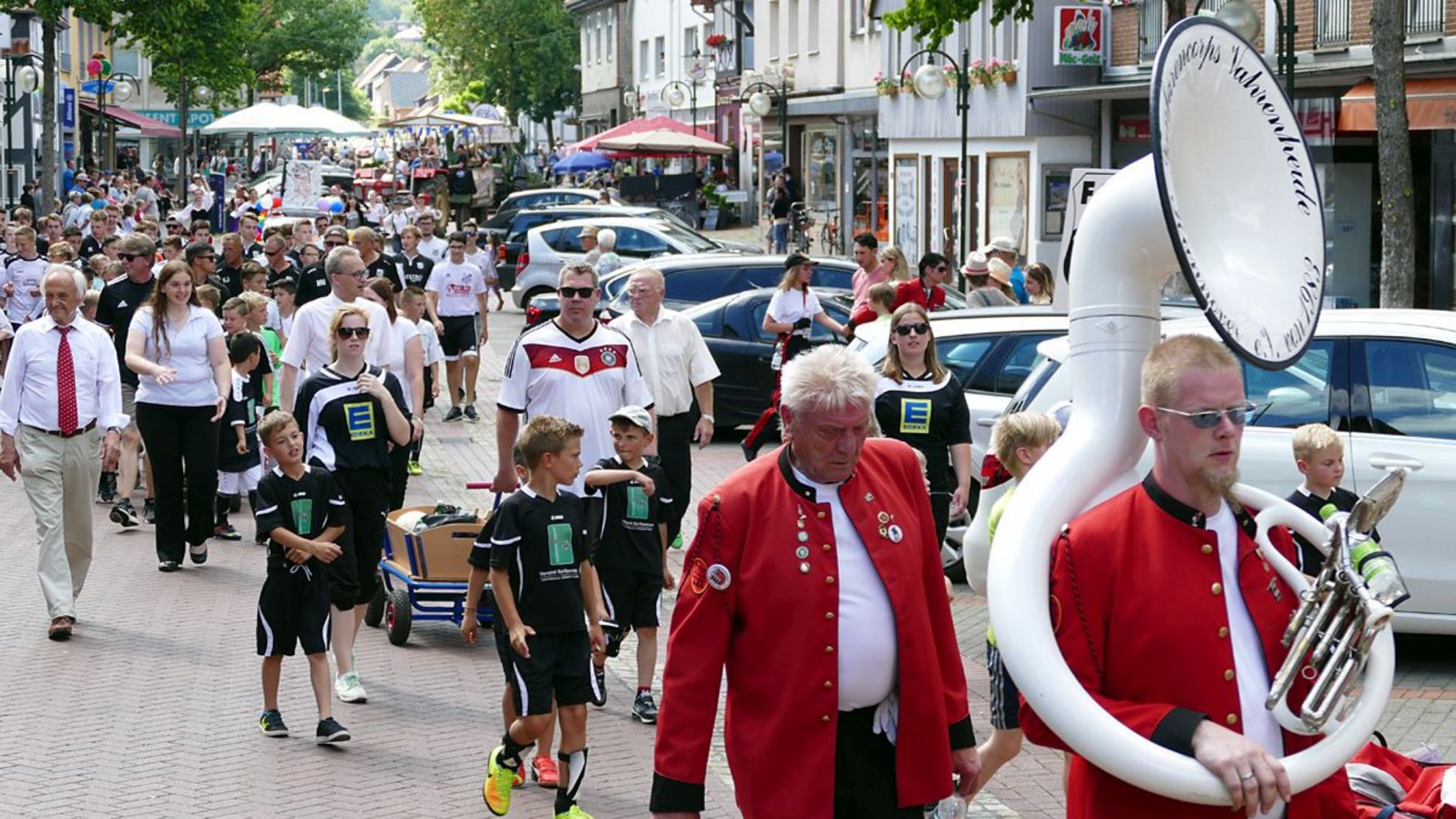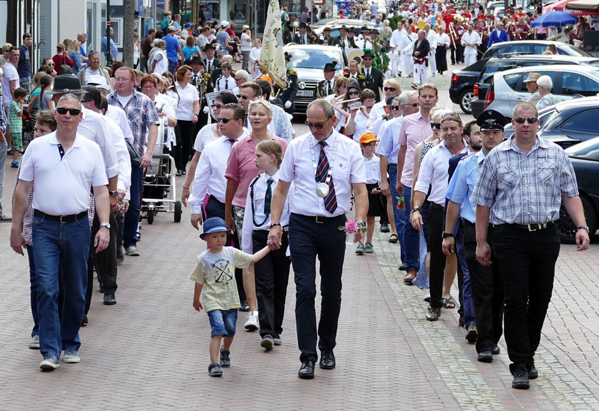 Mit einem großen Festumzug durch die Springer Innenstadt erreichte das diesjährige Volks- und Schützenfest „Unser Fest für Springe“ seinen Höhepunkt. Vorweg der stellvertretende Bürgermeister Volker Gniesmer links, in der Mitte Ortsbürgermeister Karl-Heinz Friedrich und rechts Ratsvorsitzender Christoph Rohr. Nach dem Empfang der teilnehmenden Vereine im Festzelt stellten sich alle Beteiligten bei herrlichem Wetter zum Festumzug auf.