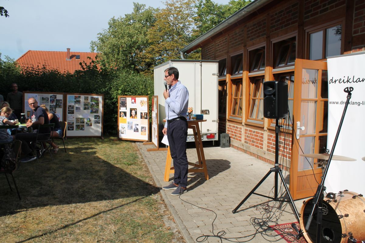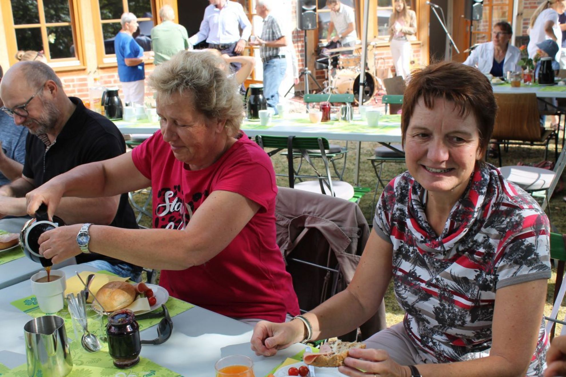 Das erste Bürgerfrühstück zum zehnjährigen Bestehen des Bürgervereins Jeinsen läuft. Uwe Presuhn, 1. Vorsitzender des Bürgervereins, ist begeistert. Mit einer derartig großen Resonanz hatte wohl niemand gerechnet. "Wir haben 140 Anmeldungen und sechs Anmeldungen von Neubürgern," freut er sich. Eine Wiederholung ist somit mehr als wahrscheinlich. Während die Bürger gemütlich ihr Frühstück einnehmen, sorgt das Akustik-Trio Dreiklang für gute musikalische Unterhaltung.
