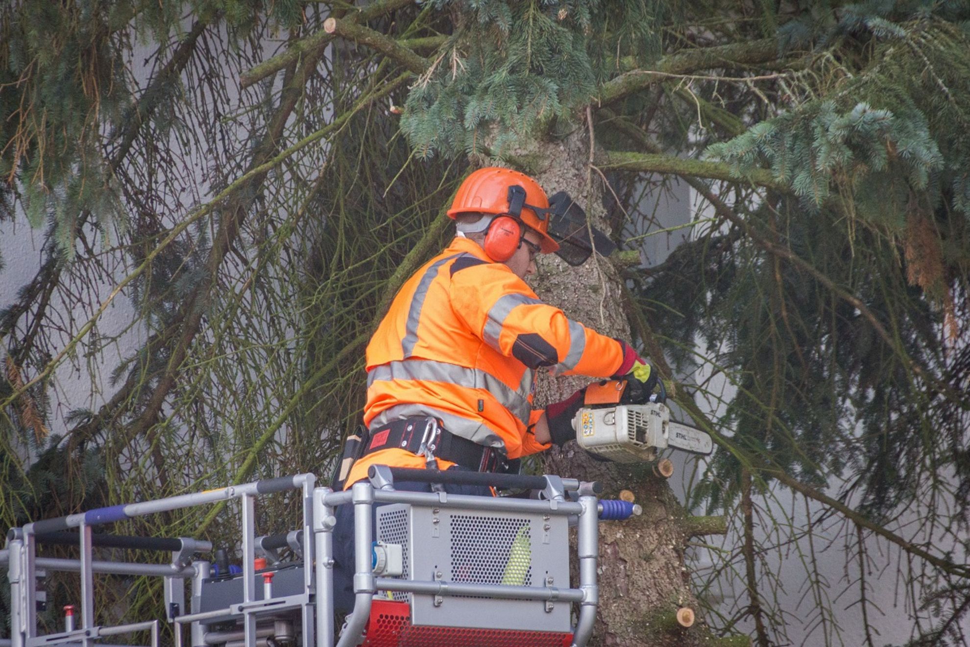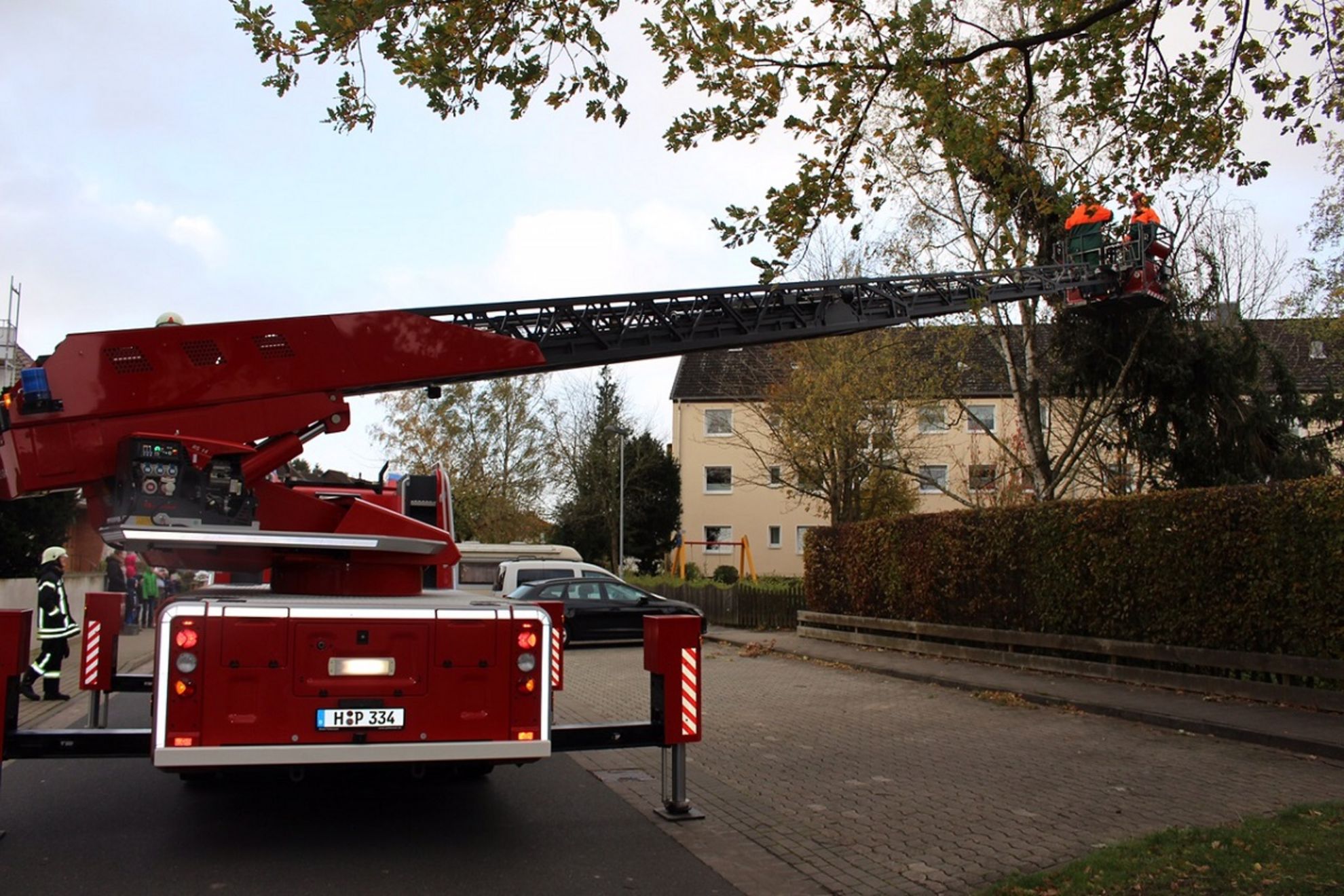 An der Dorfstraße in Hemmingen-Westerfeld ist am Samstag eine circa 15 Meter hohe Tanne auf ein Mehrfamilienhaus gestürzt. Die Ortsfeuerwehr Hemmingen-Westerfeld wurde um 9.39 Uhr alarmiert, wenige Minuten später wurde dann noch die Drehleiter der Ortsfeuerwehr Arnum nachgefordert. Mithilfe der Drehleiter und der Kettensäge wurde der Baum Stück für Stück abgetragen, um ein weiteres Umstürzen und damit weitere Schäden zu vermeiden. Die Dorfstraße musste für die Arbeiten voll gesperrt werden. Nach rund zwei Stunden konnte die Feuerwehr wieder einrücken. Im Einsatz waren die Ortsfeuerwehren Hemmingen-Westerfeld und Arnum mit sechs Fahrzeugen und 25 Einsatzkräften sowie die Polizei mit einem Streifenwagen und zwei Kräften. Die Feuerwehr weist abschließend daraufhin, bei Notfällen ausschließlich den ständig besetzten Notruf 112 zu wählen und nicht die Gerätehäuser der Freiwilligen Feuerwehren anzurufen, die in der Regel nicht besetzt sind.