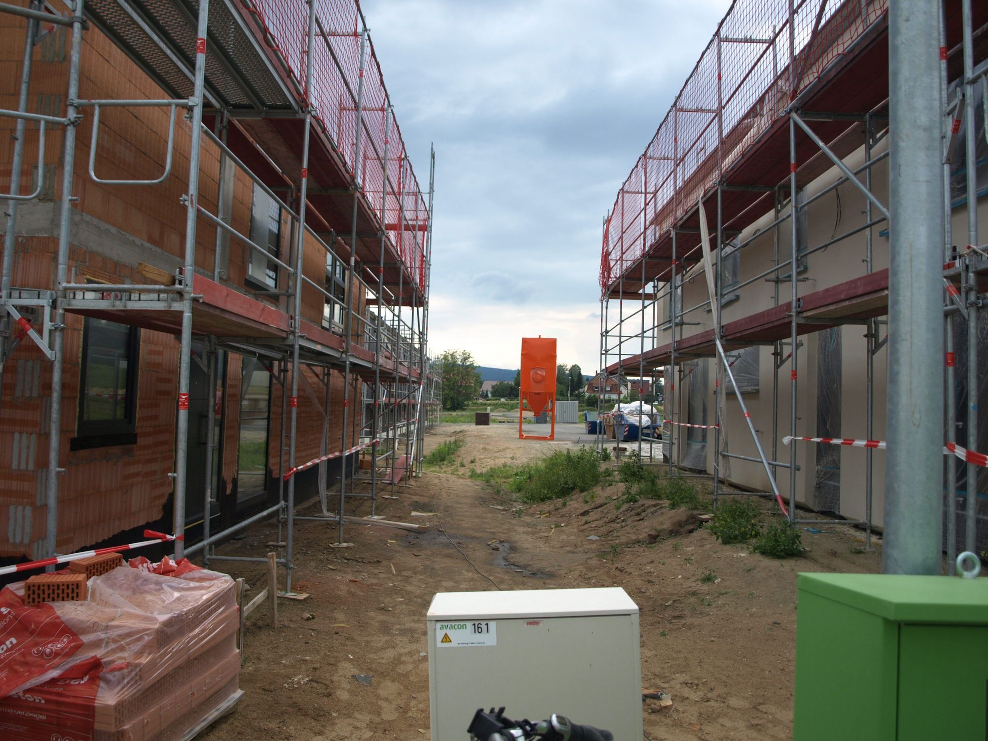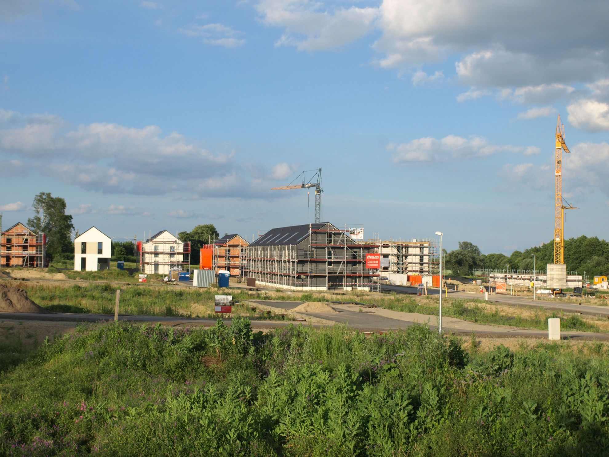 Ein Reihen- und ein Einfamilienhaus kann man tatsächlich betreten. "Blicken Sie unbedingt zum Deister", empfiehlt Architekt Alexander Meyer. "Fünf Felder sind bereits im Bau, fünf weitere Baufelder kommen noch, ergänzt Ulf Harald Koepke von der Ideal Wohnen GmbH. "Im September/ Oktober werden die ersten Häuser bezogen". Das war nicht leicht, denn der allgemeine Baumboom und der Mangel an Fachkräften verzögern jedes Bauprojekt. Geheizt werden könnte übrigens schon jetzt, das Blockheizkraftwerk der Stadtwerke Springe ist bereits fertig.