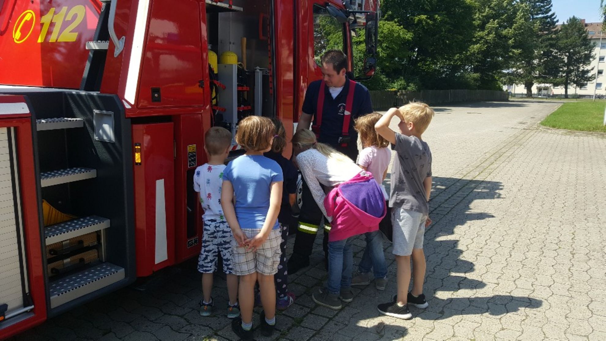 Unter dem Motto "Von Blaulicht bis Löscheinsatz – Ein Einblick in die Feuerwehr" begrüßten Nadine Kluge (Jugendwart Jugendfeuerwehr Harkenbleck) und Tobias Obst (Jugendwart Jugendfeuerwehr Arnum) 13 neugierige Kinder am Arnumer Feuerwehrgerätehaus. Die Sieben- bis Zwölfjährigen folgten interessiert den abwechslungsreichen Programmpunkten in Arnum und Harkenbleck. Themen waren unter anderem: Entstehung und Bestandteile des Feuers, Löschen in der Praxis, Vorführung der Geräte und Besichtigung der Fahrzeuge. Als absolutes Highlight wurde die Rettungsleiter, die sage und schreibe 30 Meter Höhe erreicht, ausgefahren. Den Freiwilligen lag es besonders am Herzen, den Kindern das Bewusstsein für Gefahren zu geben und ihnen Ängste zu nehmen. Oft komme es bei Einsätzen nämlich vor, dass Kinder sich aus Angst vor den Feuerwehrleuten in Montur unter Schränken oder Betten verstecken. Hier soll aktive Aufklärung für Abhilfe sorgen. Tobis Obst verriet weitere Einzelheiten: „Derzeit haben wir in Hemmingen fünf Kinderfeuerwehren (Sechs- bis Zehnjährige) und sechs Jugendfeuerwehren (Zehn- bis 16-Jährige). Alle Stadtteile freuen sich auf Neuzugänge. Die „Kleinen“ treffen sich einmal im Monat und die „Großen“ einmal in der Woche.“ Nähere Informationen sind der auf Homepage zu finden, Neuanmeldungen herzlich willkommen.
