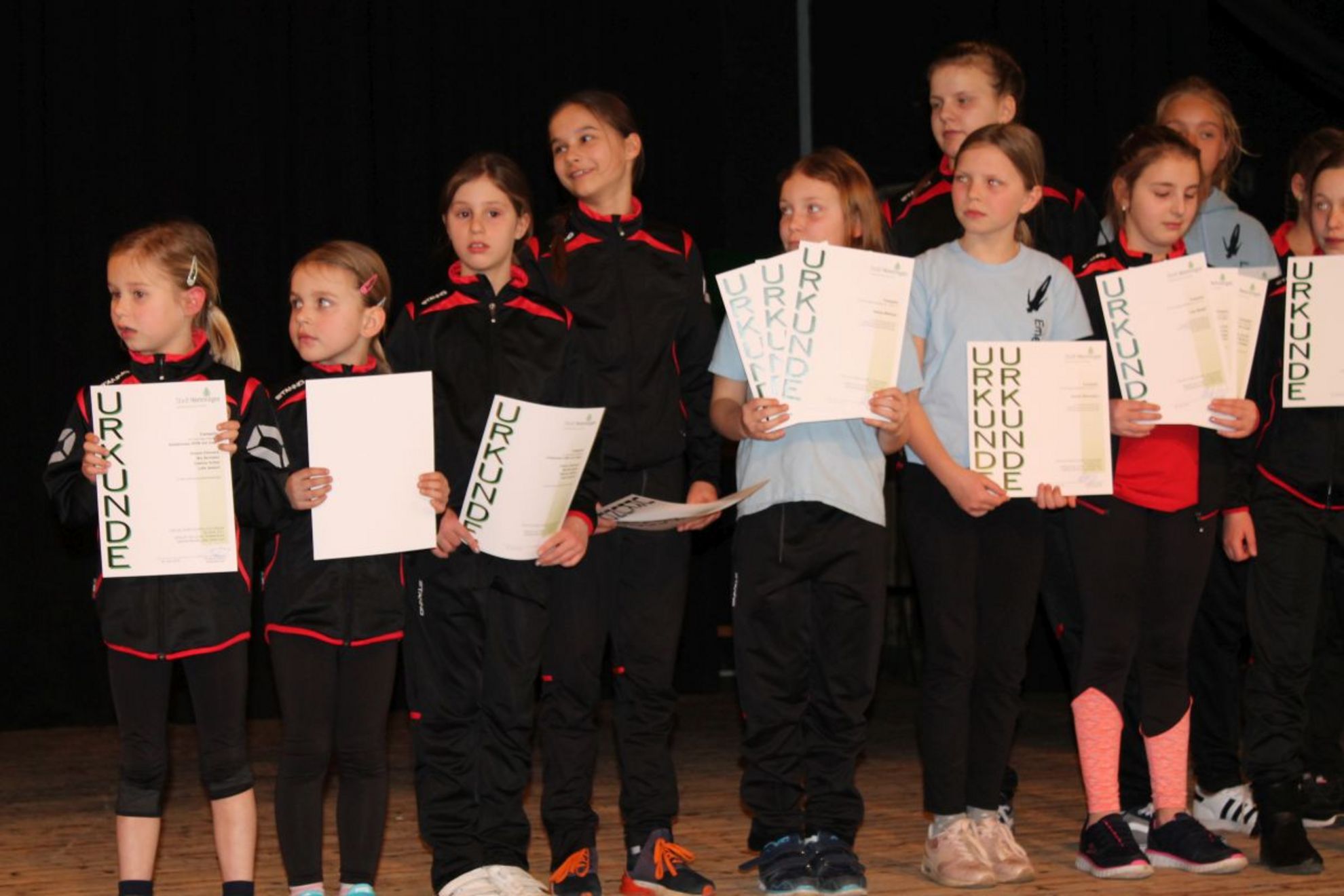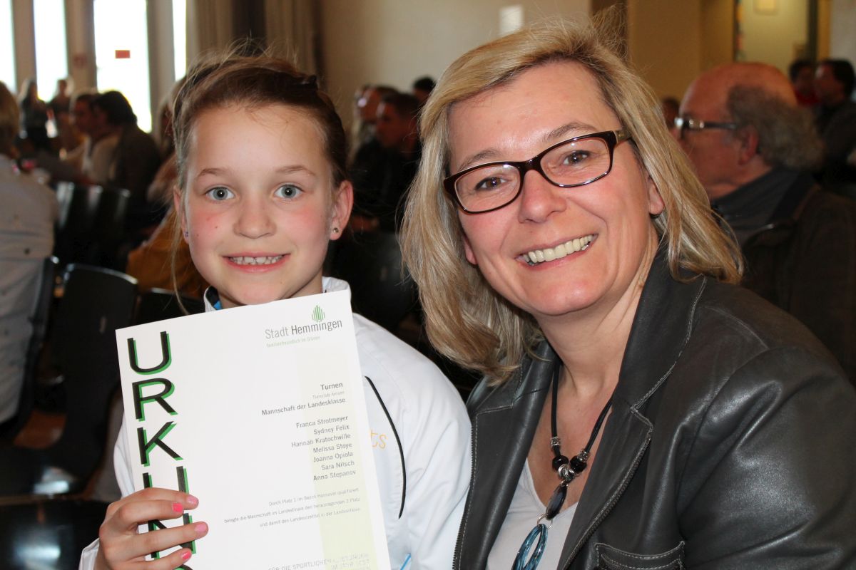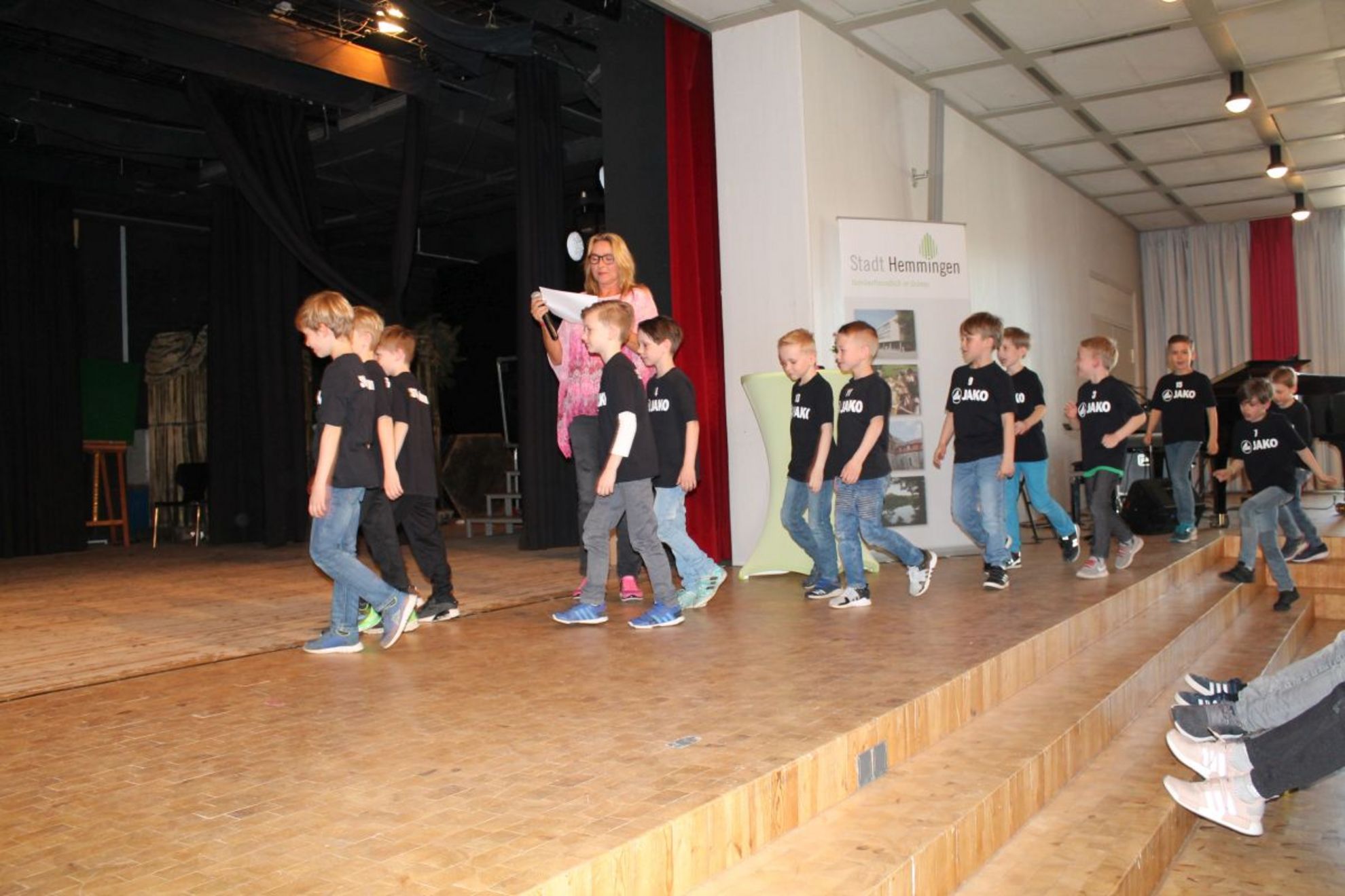 Der Verlauf der bereits traditionellen Sportlerehrung war kurzweilig, Kerstin Werner führte charmant und heiter durch das bunte Programm. 130 Kinder und Jugendliche aus den Sportarten: Fußball, Gerätturnen, Judo, Klettern, Leichtathletik, Rhönrad, Schwimmen, Tennis, Tischtennis, Turnen, Trampolin, Volley- und Wasserball freuten sich über ihre Urkunden. Die Judosparte des SC Hemmingen Westerfeld führte Würfe und Fallübungen vor, Singer-Songwriter Michael Becker erfreute das Publikum mit drei seiner Eigenkompositionen.