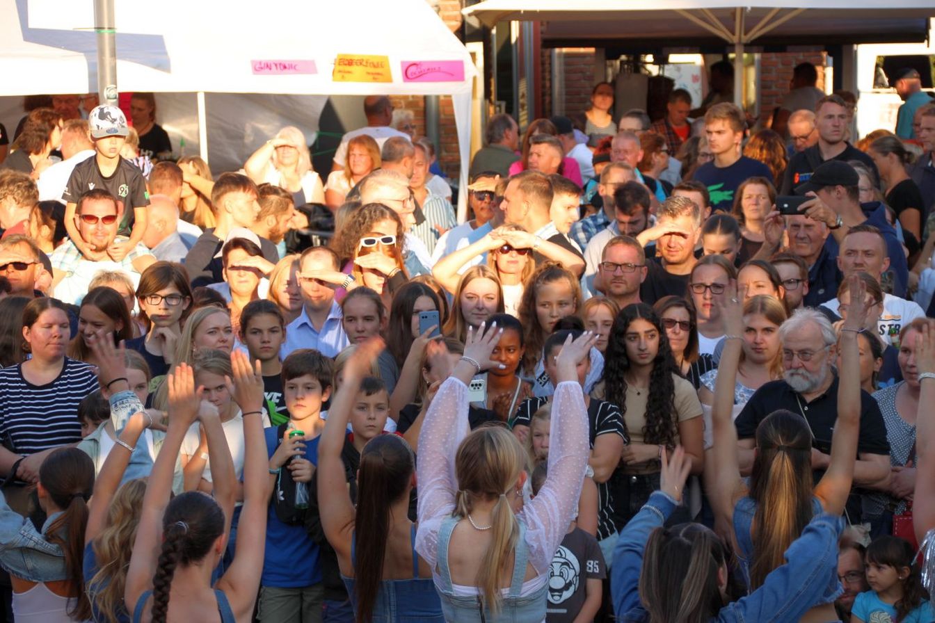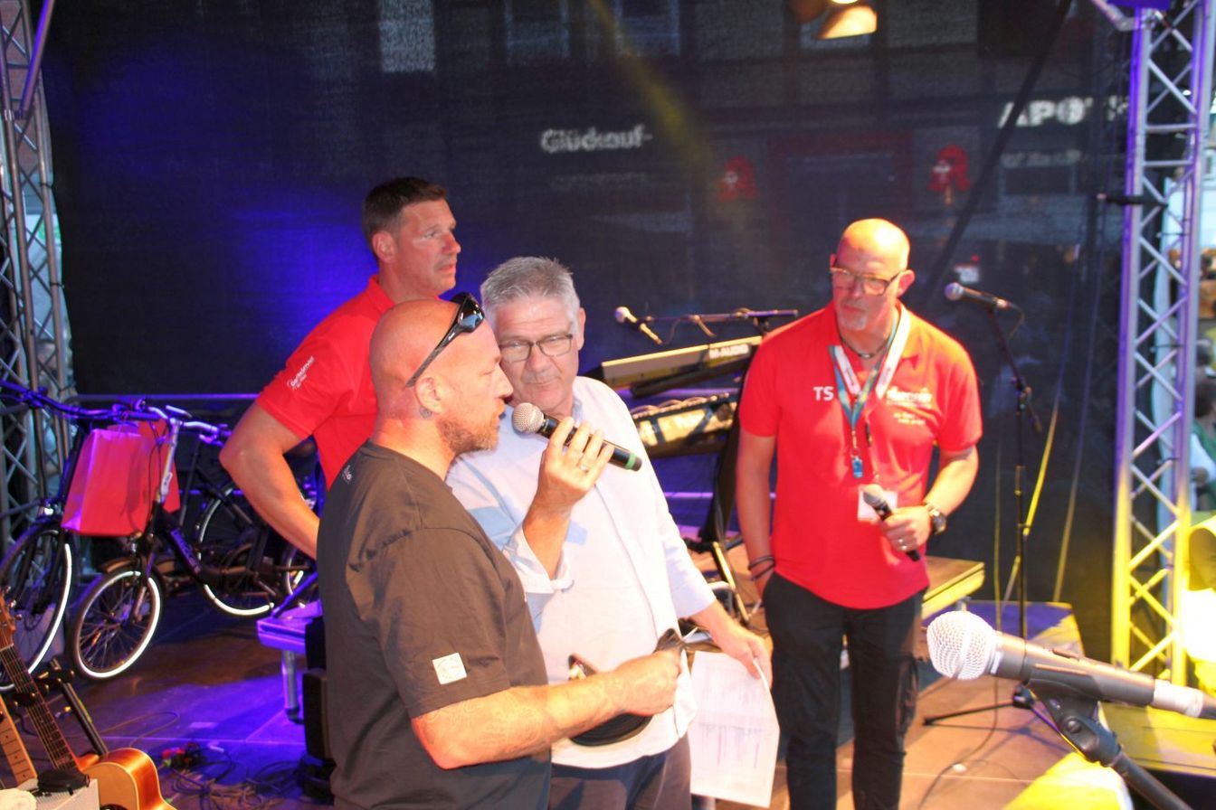 „Der Freitag war schon super“, freute sich Torsten Sander, Vorstand IG Stadtfest, auf der Bühne vor einem vollen Thie, „Als Veranstalter war ich natürlich der Letzte der gegangen ist und am Freitagabend war vor allen Bühnen richtig was los.“ Gefühlt hat sich an diesem späten Nachmittag gesamt Barsinghausen am Thie versammelt, um bei der Tombola dabei zu sein. Mit 40 Gewinnen gab es zehn mehr als im letzten Jahr. Allein die ersten 20 Gewinne hatten einen Wert von 11.000 Euro. Insgesamt waren es rund 15.000 Euro. Es gab Fernseher, Handy, E-Bikes und mehr. Für ein Wochenende mit einem Motorrad, wurde die Harley bis auf den Thie gefahren. Als Glücksfee an der Lostrommel fungierte die kleine Laila
