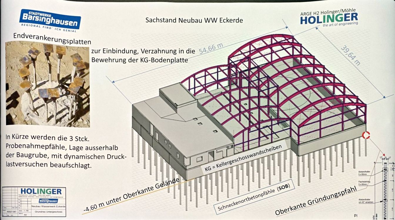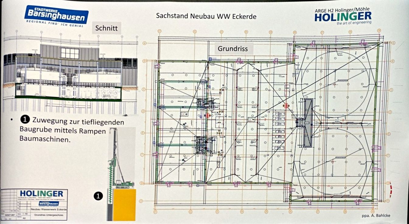 Eckerde. Auf der Baustelle zum neuen Wasserwerk in Eckerde geht es weiter voran. Shteryo Shterev, Geschäftsführer der Stadtwerke Barsinghausen, und André Bahlcke von Holinger Ingenieure gaben nun erneut einen Einblick in das Bauvorhaben. Vor dem Jahresende steht noch viel an, wenn trotz Verzögerungen die Inbetriebnahme Ende 2028 erfolgen soll. Auch PFAS ist weiterhin Thema an der Baustelle.