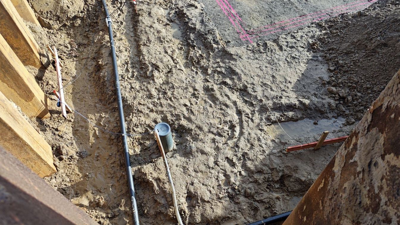 Nun stehen Pfahlgründungen an. „Aufgrund des Auftriebs durch das Grundwasser können wir nicht direkt mit der Bodenplatte beginnen“, beschreibt Bahlcke die nächsten Schritte. „Erst werden wir 191 Pfähle einbringen, auf die wir dann die Bodenplatte des Kellers bauen.“